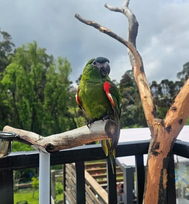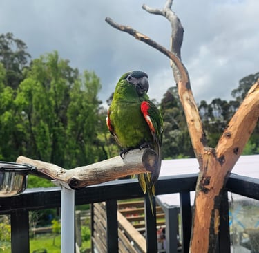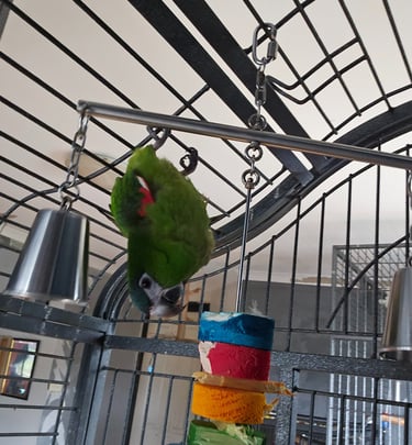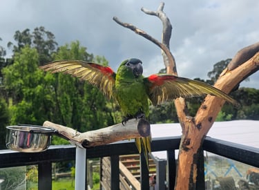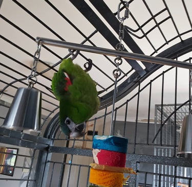 Cass joined the Majick Feathers family in 2022 and instantly stole our hearts. Hatched with a curved spine and a little twist in his foot, he was dealt a different set of feathers than most — but don’t think for a second that slows him down! Nope. Our mini macaw has maximum confidence, a cheeky grin, and a whole lot of determination.