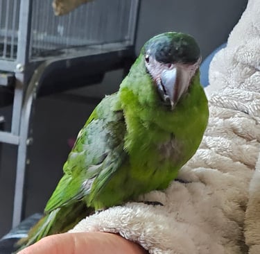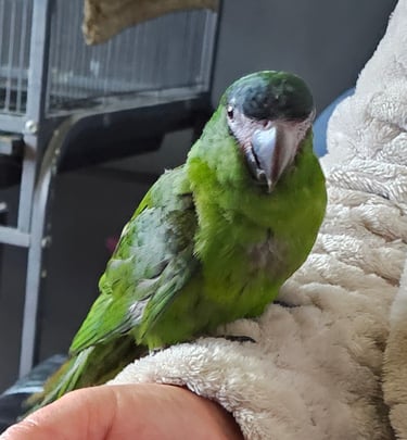He trusts her, snuggles with her, and even gives her VIP access to The Royal Head Scritch Zone™. But like every parrot here at Majick Feathers, his autonomy matters. He chooses when to interact and how — because consent and comfort come first. 🫶