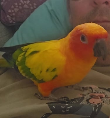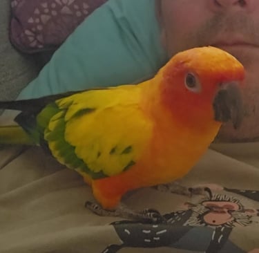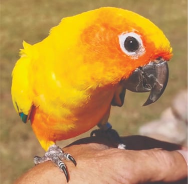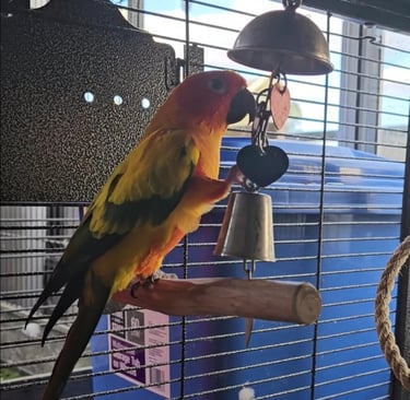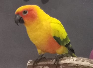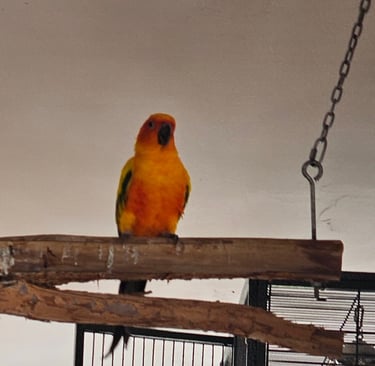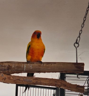 Rocco is a Sun Conure with a heart full of sunshine and a personality that’s larger than life! He joined the Majick Feathers flock in 2023, becoming the third Sun Conure in our avian family — and he’s been brightening up our days ever since.