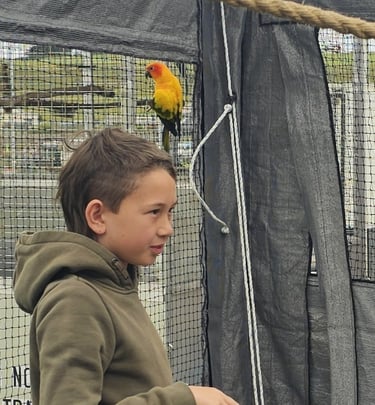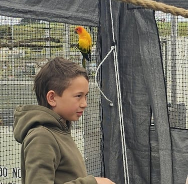 True to his species, Rocco is social, affectionate, and bursting with character. Whether he’s riding on a shoulder, showing off his colours, or chatting with visitors, Rocco absolutely loves being around people. His confidence and charm make him a natural in our interactive shows, where he happily joins in on the fun and adds a splash of colour and joy to every event.