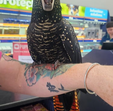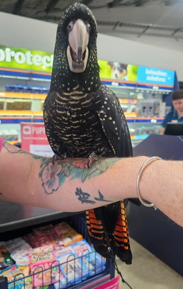 A “Protected Wildlife Permit” is required to keep Red-Tail Black Cockatoos and a “Permit to Display Protected Wildlife” is also required to be able to bring her to our shows